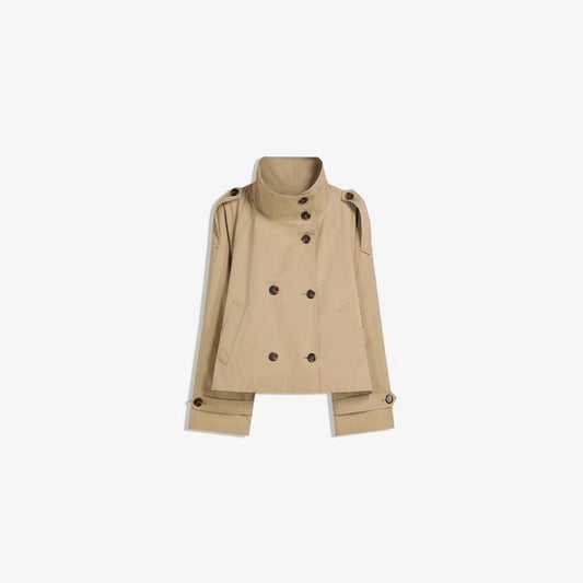 Vintage Double-Breasted Tied Lapel Design Long Sleeve Short Coat with Casual Style
