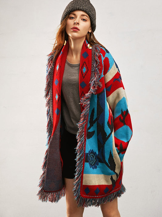 Fuzzy Floral Sweater Cardigan Slouchy Belt Coats For Women Winter Cozy Warm Wool Cashmere Boho Colorful Knitting ChicSoft Kimono