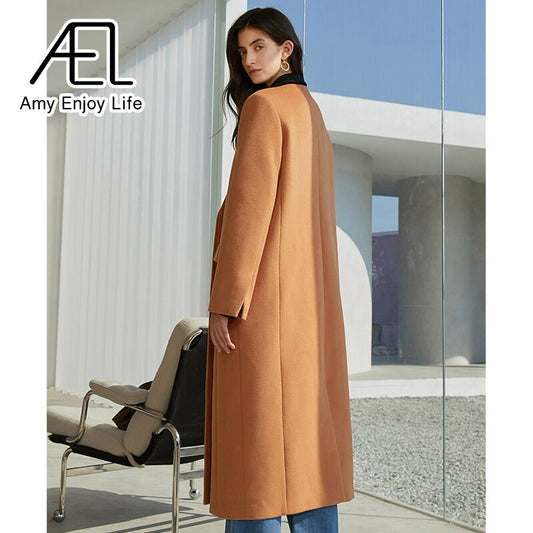 New Winter High Count Australian Wool Thickened Woolen Overcoat For Female