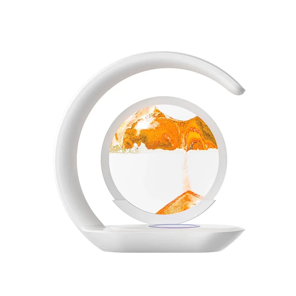 Quicksand Table Lamp Wireless Charging Desk Lamp 3D Hourglass Ornaments Sand Painting Night Light for Office Room Decoration